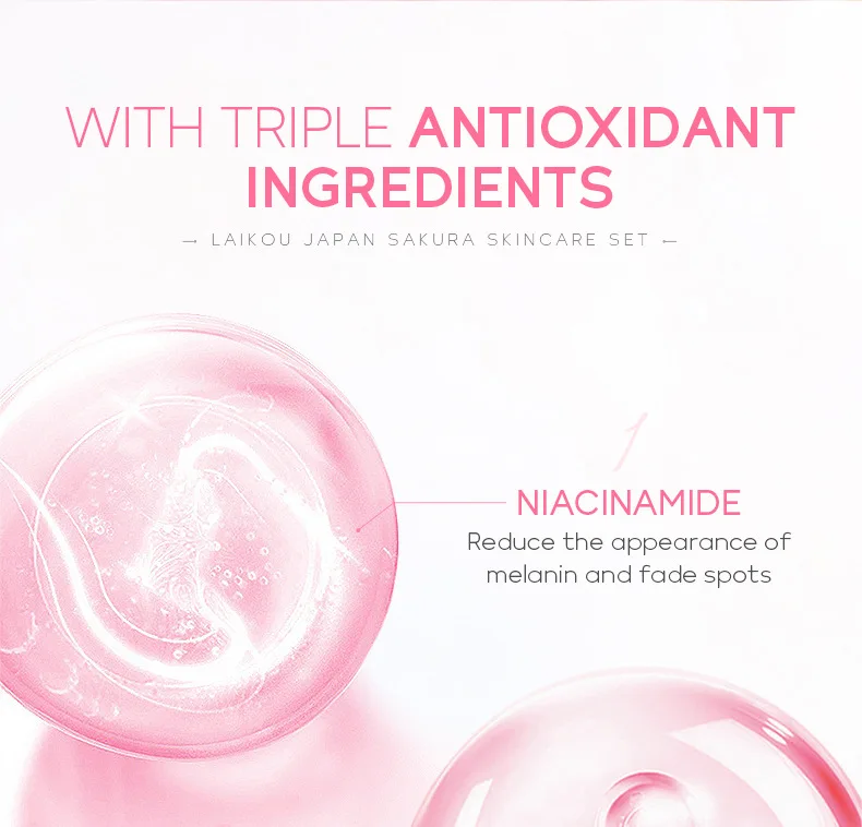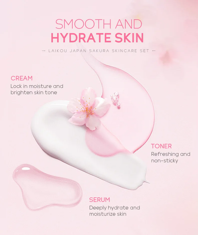 LAIKOU Japan Sakura Essence Cream is rich in Sakura Active Extract and Nicotinamide, which can deeply moisturize the skin, replenish nutrition and enhance the skin. It solves the skin problems like skin dullness, fine lines and skin aging. From inside to outside, it restores skin elasticity and rejuvenates the skin.