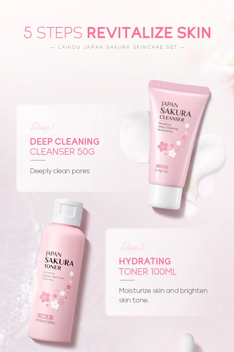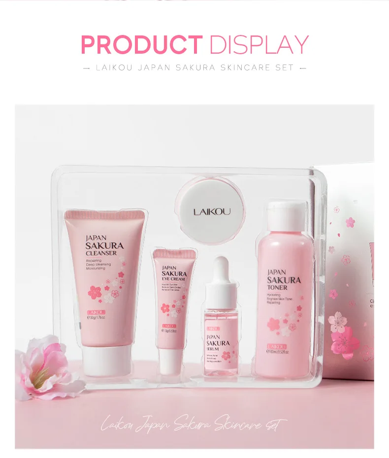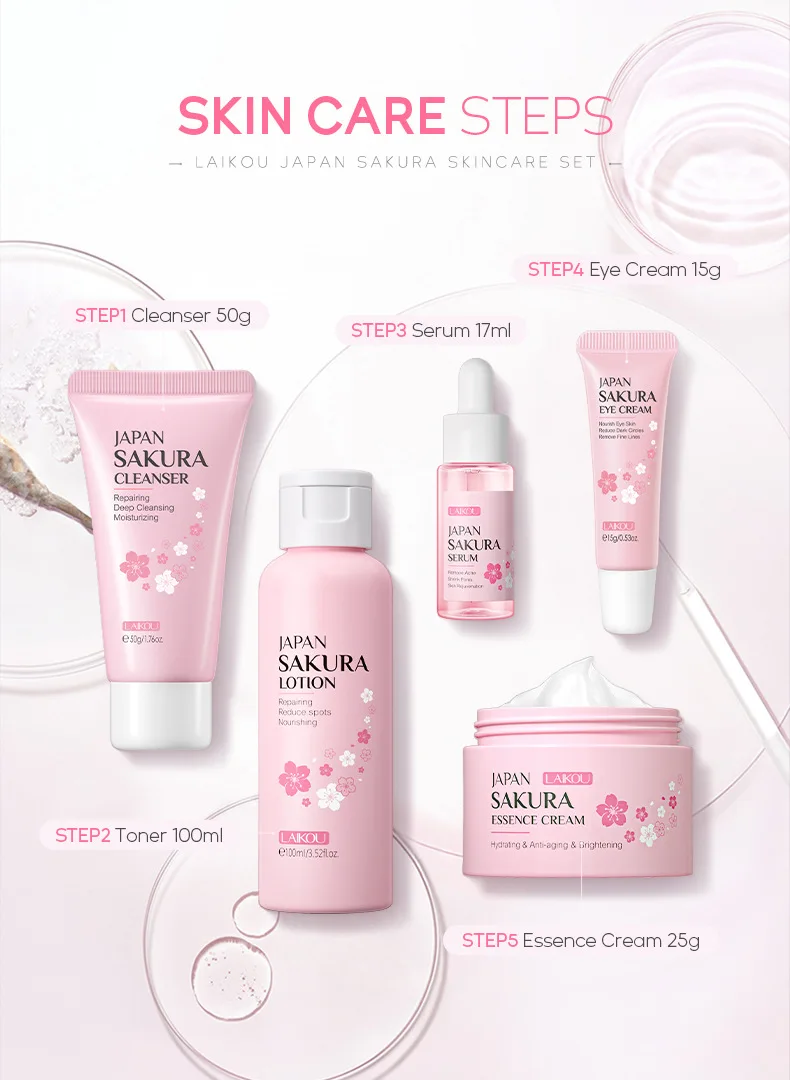 5-piece Gift Box Cherry Blossom Skin Care Set Collagen Eye Cream & Serum & Facial Cleanser&Toner &Facial Cream Beauty Makeup Set